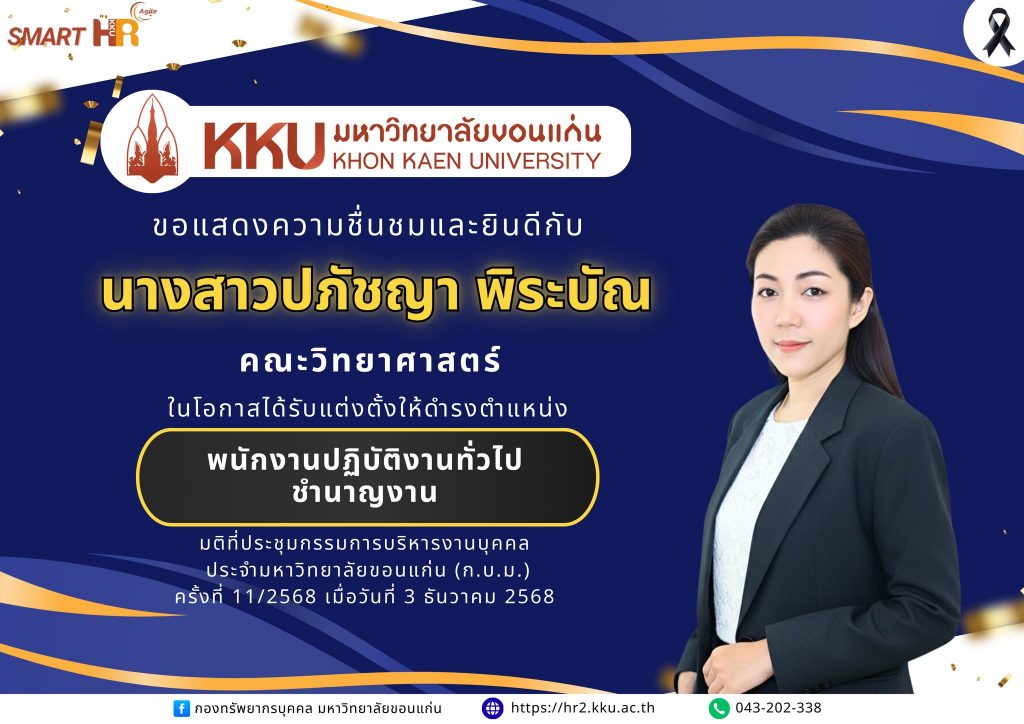 สาขาวิชาสถิติ ขอแสดงความยินดีกับ นางสาวปภัชญา พิระบัณ เจ้าหน้าที่สายสนับสนุนหนึ่งเดียวของสาขาวิชาสถิติ ในโอกาสที่ได้รับการแต่งตั้งให้ดำรงตำแหน่งตำแหน่งที่สูงขึ้น. ![]()